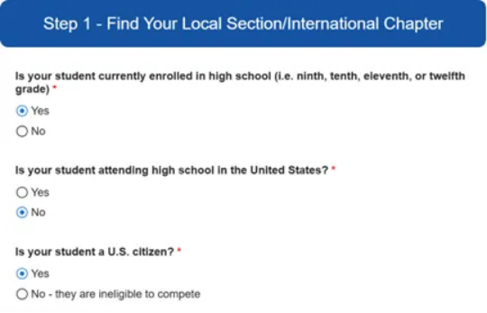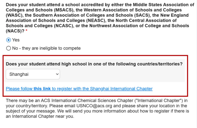有兴趣参加比赛的学生必须填写注册表向 ACS 注册所有考生均须到 ACS National 报名, 点击Step 1 下方registration link,填写报名信息;